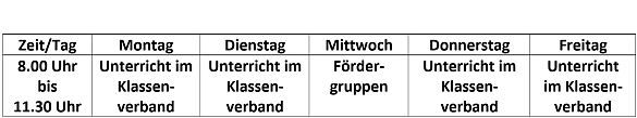 Die Kinder werden deshalb ab nächster Woche im Klassenverband an vier Tagen in der Woche für jeweils 4 Stunden unterrichtet.