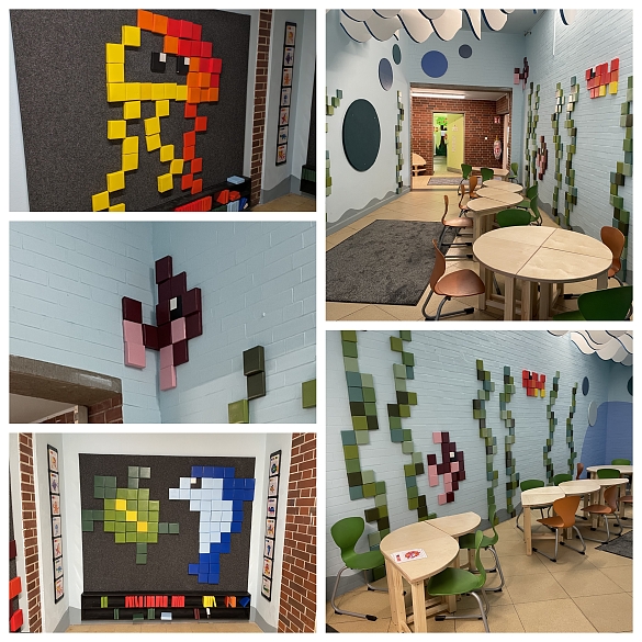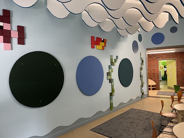 Wir hatten das große Glück die Schüler und Schülerinnen des Schulzentrum Alwin-Lonke-Straße für die Umgestaltung des Aquarium zu gewinnen. Im letzten Halbjahr hat die Klasse FOS G11 im Rahmen des Faches Produktgestaltung und Kommunikationsdesign die Ideen und Wünsche unserer Kinder in Modelle eingebaut und schließlich in der Fachpraxis die kreativsten Ideen in die Tat umgesetzt. Jetzt erstrahlt der Raum in ganz neuem Glanz.