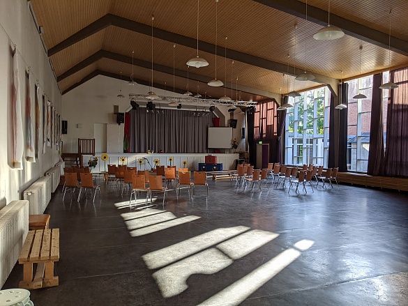 Nachdem Frau Bardenhagen ein paar Begrüßungsworte gesprochen hatte, gab es auch schon die erste Überraschung: Das Schulensemble hat musiziert. Aber sie waren nicht in der Aula! Durch das Wunder der Technik konnte das Ensemble in der Mensa spielen und wurde per Livestream auf die Leinwand in der Aula übertragen. Zauberei!