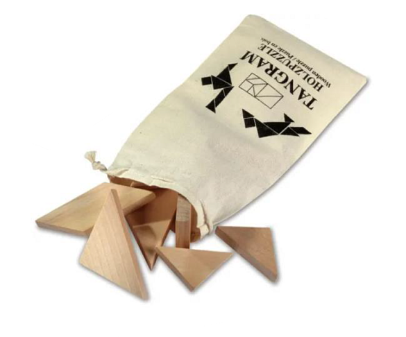 Und was ist diesmal als kleines Geschenk in den Nikolaustüten drin? Ein Tangram-Puzzle aus naturbelassenem Wacholderholz in einem umweltfreundlichen Baumwollbeutel.