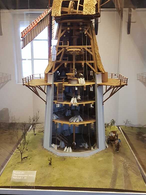 Das fertige Mehl wird in Säcke gefüllt. Wenn eine Mühle in Betrieb ist, dann ist es sehr laut. Die Oberneuländer Mühle ist nicht in Betrieb. Es wäre aber möglich. Vorher müsste ein Rad repariert werden.