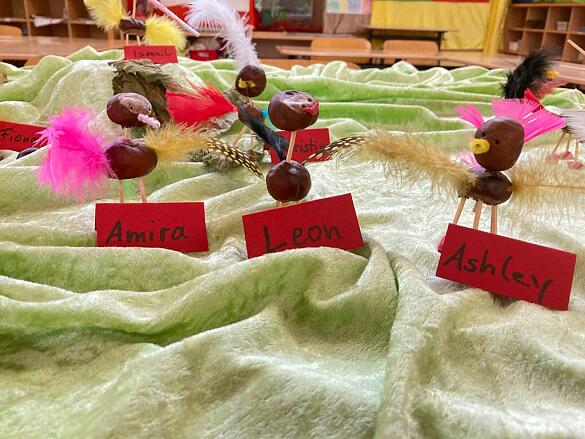 Die 1c hat Phantasietiere aus Kastanien gebastelt!