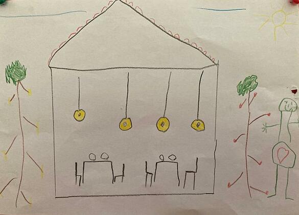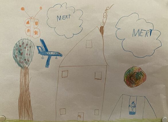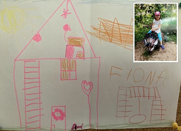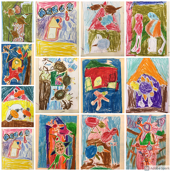 Jetzt haben die Kinder ihr Vogelhaus Bild mit Wachsmalstiften gestaltet!