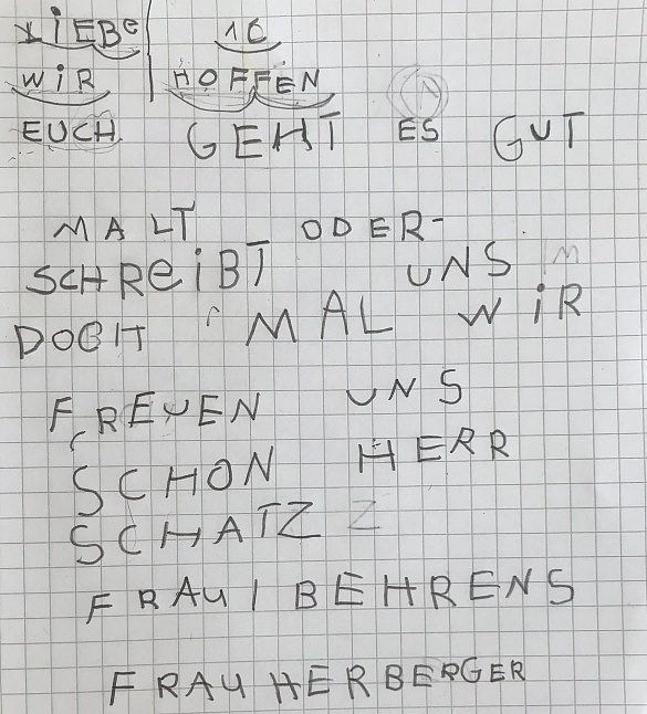 Dazu könnt ihr gerne in den Deutschmappen (Schreibhefte bis zum "ei" und das Karibu genauso) und Mathemappen (besonders die dünnen Hefte mit den Rechentricks und die dazugehörigen Aufgaben im Indianerheft) arbeiten, was noch nicht fertig geworden ist.