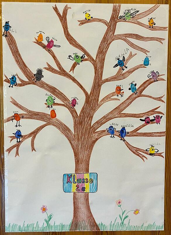 Im Kunstunterricht sind diese wunderbaren Werke entstanden. Mit Wasserfarben und unseren Händen haben wir den herbstlichen Hintergrund gestaltet. Der Baumstamm wurde anschließend aus Tonpapier gebastelt und festgeklebt. Jetzt ist unsere Garderobe wieder farbenfroh und macht uns gute Laune!