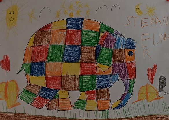 Unter den Elefanten ist Elmar so etwas wie ein bunter Hund. Kariert ist er, und leuchtet in purem Gelb und Rot und Blau und Lila durch den grünen Dschungel. Ein Spaßmacher ist Elmar auch, und deshalb bei allen Elefanten, Zebras, Löwen, Krokodilen überaus beliebt.