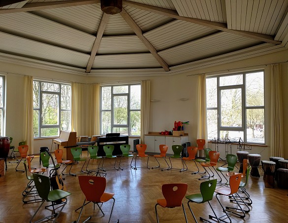 Seit 2002 gibt es an unserer Schule das Musikprofil, welches mit großer Begeisterung von Schüler:innen, Eltern und Außenstehenden angenommen wird. Musik in unserer Schule ist kein „kulturelles Sahnehäubchen“, sondern schafft, kontinuierlich integriert in den schulischen Alltag, wichtige und notwendige Bildungsmöglichkeiten.